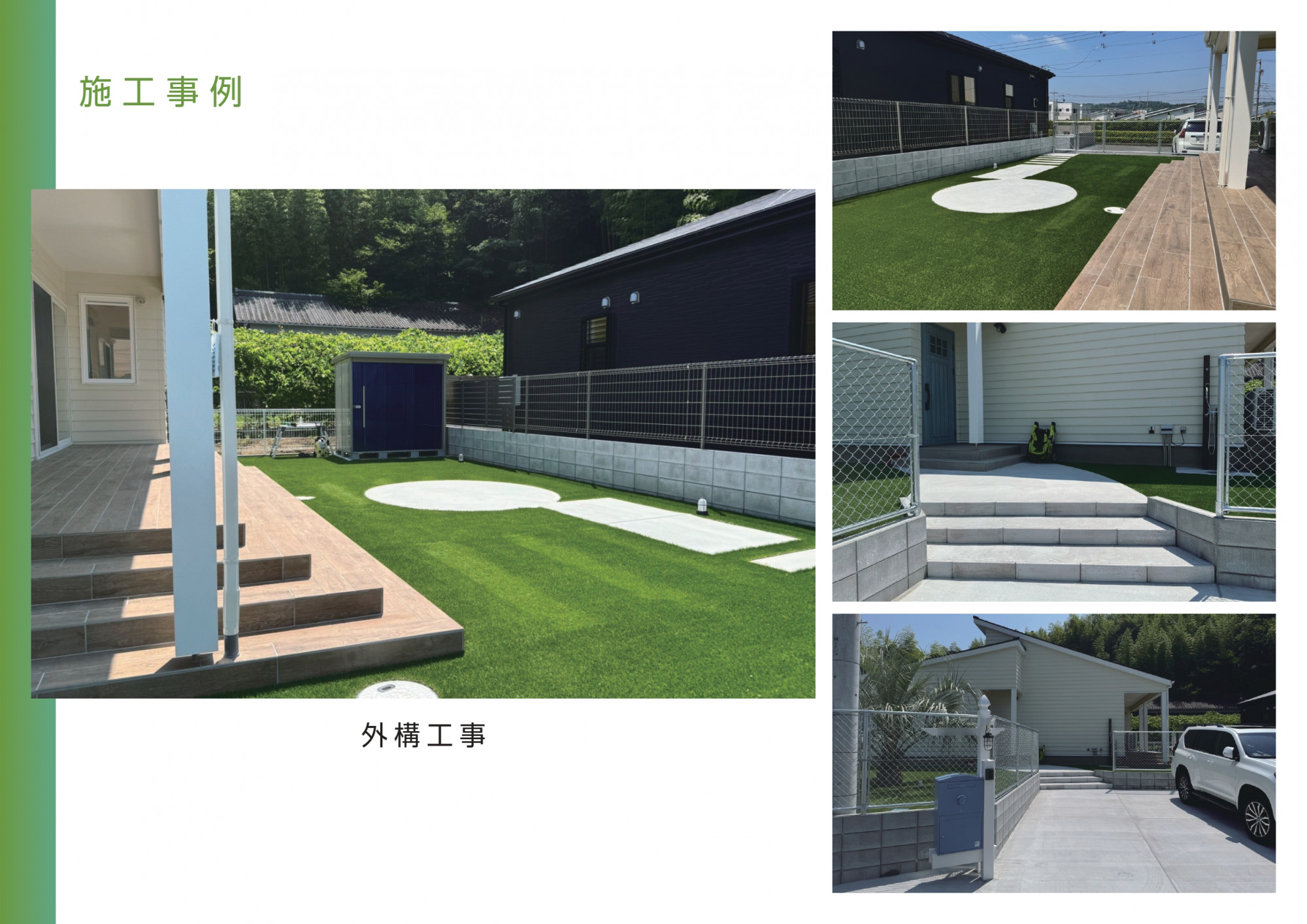 家と庭・ガレージを一体と捉えた理想の空間づくりを目指し、丁寧なヒアリングと確かな技術による施工を徹底しています。